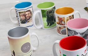 Cetak mug dengan bahan mug super white ataupun bahan mug berwarna